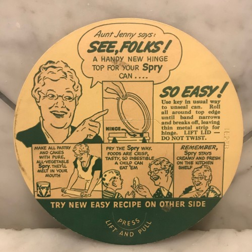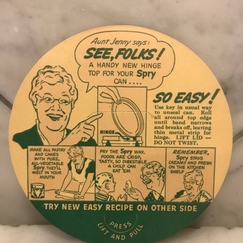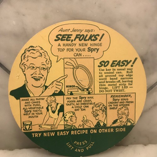 Spry Vegetable Shortening Recipe Card, Fried Chicken, French Fried Potatoes, Broiled Coconut Icing